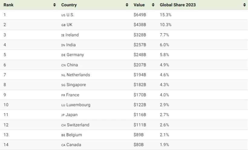 با ۶۴۹ میلیارد دلار صادرات، ایالات متحده پیشتاز جهانی در خدمات دیجیتال است و در سال ۲۰۲۳ حدود ۱۵.۳ درصد از کل صادرات جهانی را به خود اختصاص داده است. حدود دو سوم از صادرات خدماتی آمریکا به صورت دیجیتال انجام میشود.
