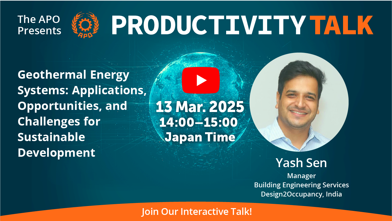 سازمان بهره وری آسیایی، یک گفتگوی بهره وری با موضوع «سیستم‌های انرژی زمین گرمایی: کاربردها، فرصت‌ها و چالش‌های توسعه پایدار» برگزار می‌کند.
