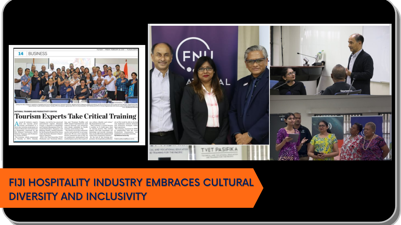 به گزارش پایگاه خبری بهره ورنیوز، این ابتکار که توسط دپارتمان گردشگری، مهمان‌نوازی و سفر در دانشگاه ملی فیجی (FNU) میزبانی شد، با هدف تجهیز متخصصان مهمان‌نوازی به استراتژی‌های نوآورانه برای مدیریت تنوع فرهنگی و افزایش فراگیری از نظر ارائه خدمات و مشتریان صورت پذیرفت.