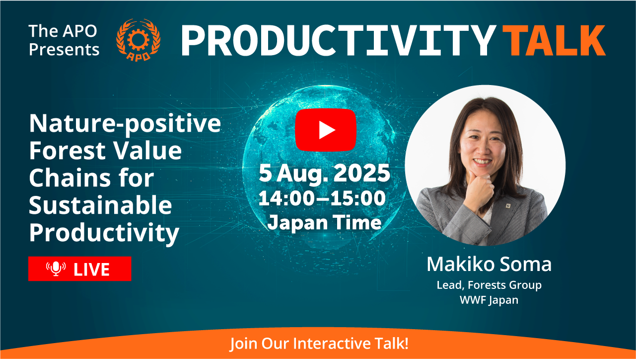 سازمان بهره وری آسیایی یک گفتگوی بهره‌وری با عنوان «زنجیره‌های ارزش جنگل‌های سازگار با طبیعت برای بهره‌وری پایدار (Nature-positive Forest Value Chains for Sustainable Productivity) برگزار میکند.