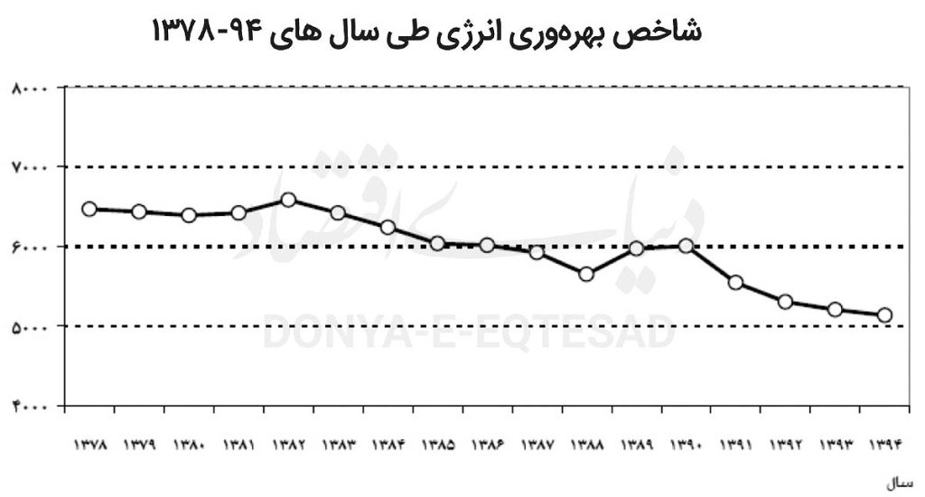 از طرفی مقدار برقی که به مصرف نهایی در کشور میرسد معادل ۱۸۵.۸میلیون بشکه نفت خام است. با تشکیل کسر ۳۷۹.۱ روی مخرج کل انرژی تولیدشده به عدد ۰.۶۷ میرسیم که یعنی ۶۷درصد تولید برق نیروگاههای کشور در فرایند تبدیل و انتقال مصرف (هدر) میشود.