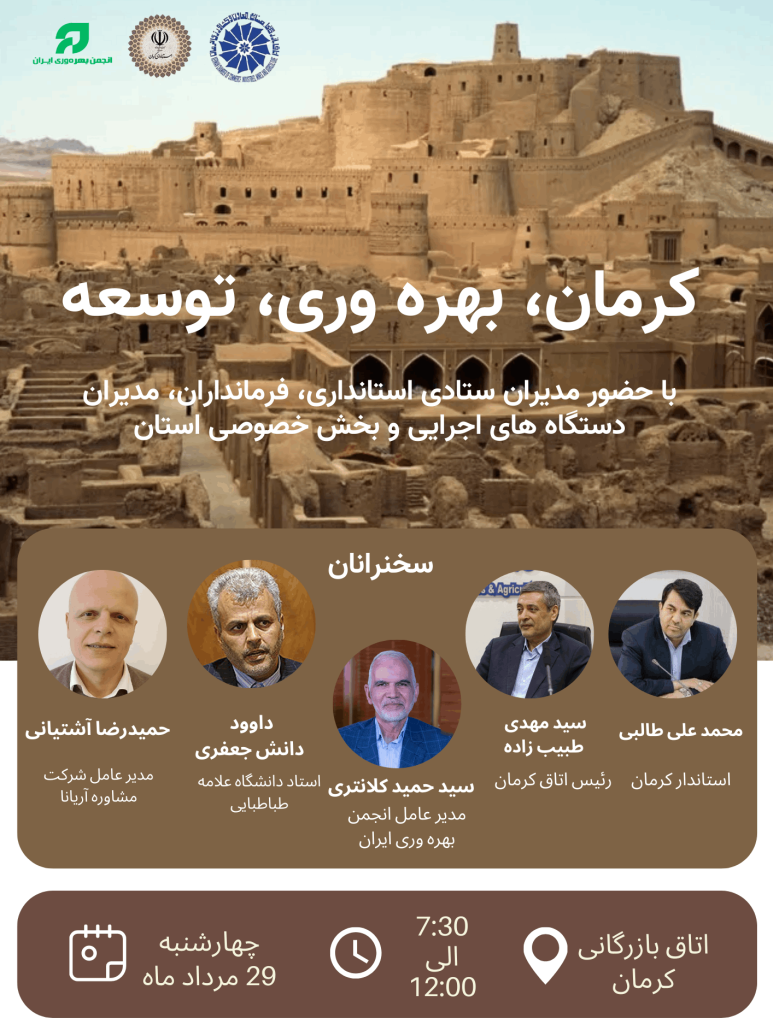این همایش از ساعت 8 الی 12 روز چهارشنبه 29 مردادماه 1404 در اتاق بازرگانی کرمان میزبان متخصصان و علاقهمندان است.