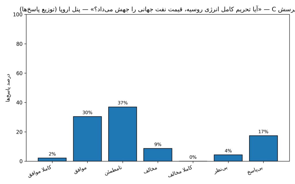 در سوی مقابل، اقتصاددانان اروپایی با احتیاط بیشتری پاسخ دادند. هرچند بخش مهمی نیز در گروه موافق جای داشتند اما شمار بیشتری نسبت‌به همتایان آمریکایی خود گزینه نامطمئن را انتخاب کردند؛ گویی تجربه مستقیم اروپا از بحران انرژی و نیاز به تداوم واردات از روسیه باعث می‌شد نگاهشان محتاط‌تر باشد.