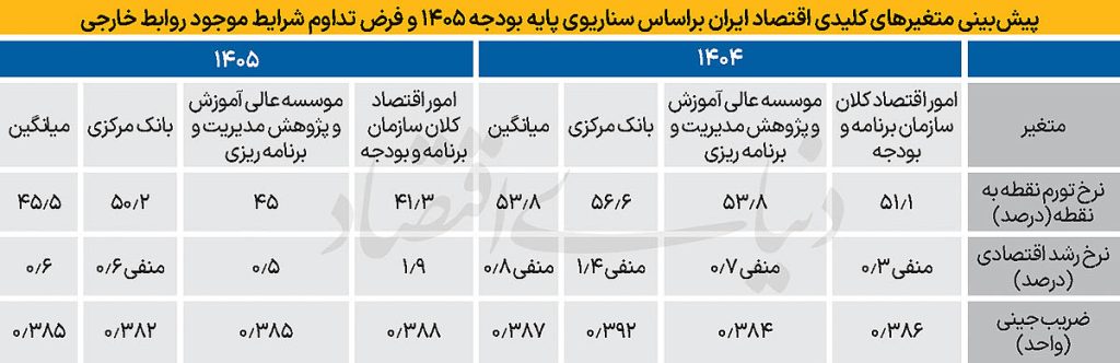 از سوی دیگر متوسط نرخ رشد اقتصادی در سال1404 منفی 0.8درصد گزارش شده است که برای سال آینده نرخ 0.6درصدی پیشبینی شده است. نرخ پیشبینیشده نشان از انتظار بهبود جزئی در سال آینده نسبت به سال جاری دارد. همچنین ضریب جینی با کاهشی اندک از 0.387 در سال جاری به 0.385 در سال1405 پیشبینی شده است.