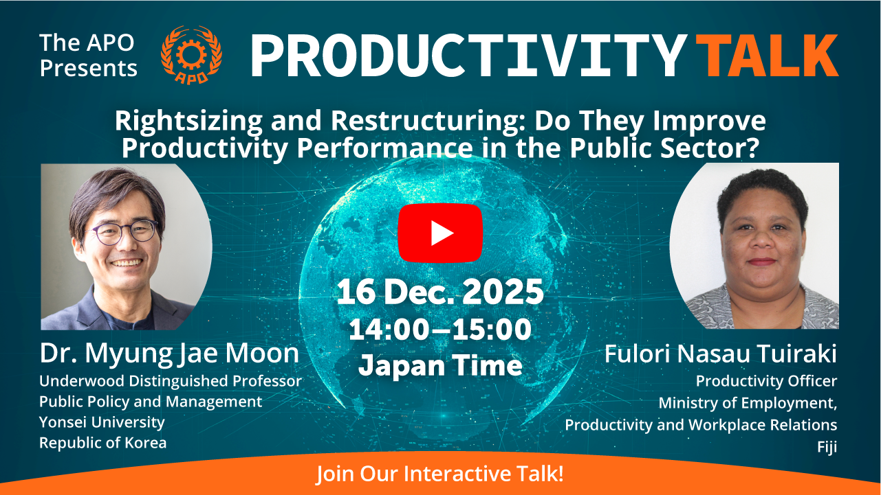 به گزارش پایگاه خبری بهره ورنیوز، این گفتگوی بهره وری (P-Talk) یافته‌های یک مطالعه سازمان بهره وری آسیایی (APO) در مورد استراتژی‌های بازسازی و متناسب‌سازی در اصلاحات بخش عمومی برای بهبود عملکرد بهره‌وری را به اشتراک می‌گذارد.